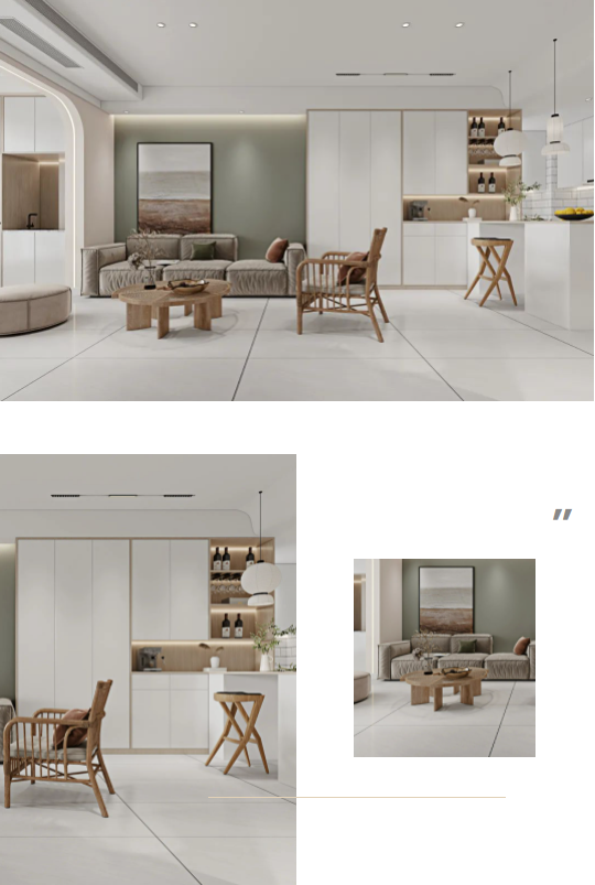 客廳選用通體瓷拋石中板貝加爾湖為背景,搭配質(zhì)樸原木色,把平和舒緩的氛圍植入到每個(gè)角落,暖色的燈光仿佛在演繹著春天的活力,整個(gè)空間溫馨而靈動(dòng)。