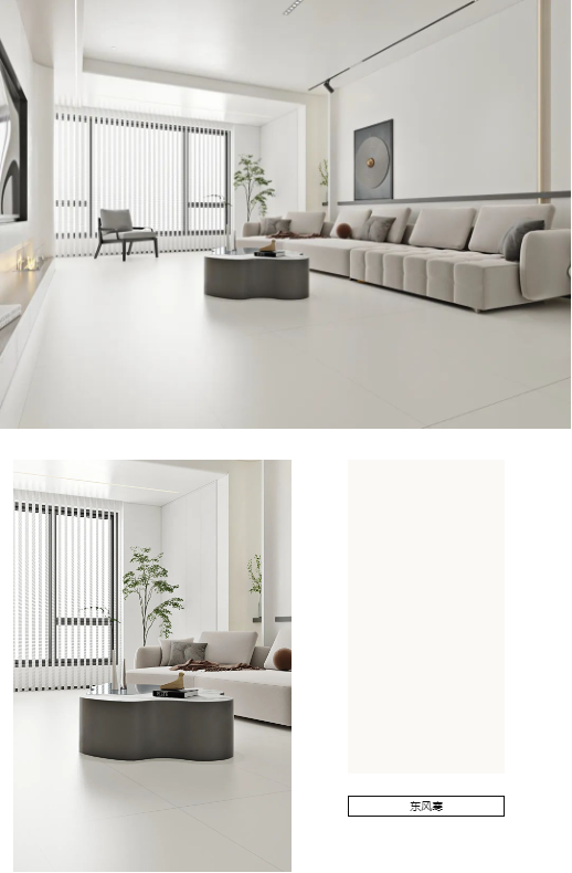 遵循“少即是多”的理念,宋素|凡古磚-東風寒擺脫了大開大合的紋理,簡約的色系,結合窗外柔和陽光,映照屋內療愈錯落的輪廓,仿佛在訴說著家的幸福味道。