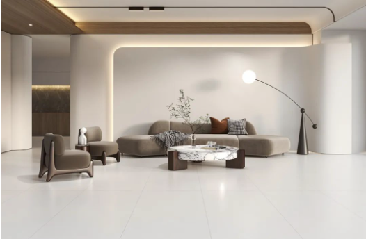 當陽光傾瀉而下,750x1500mm規格沁園春打造的簡約背景墻,與整個空間色系完美融合,延伸中不僅拓寬視覺界限,質樸沉靜的底蘊,仿佛讓空間散發出一種歲月沉淀的味道。