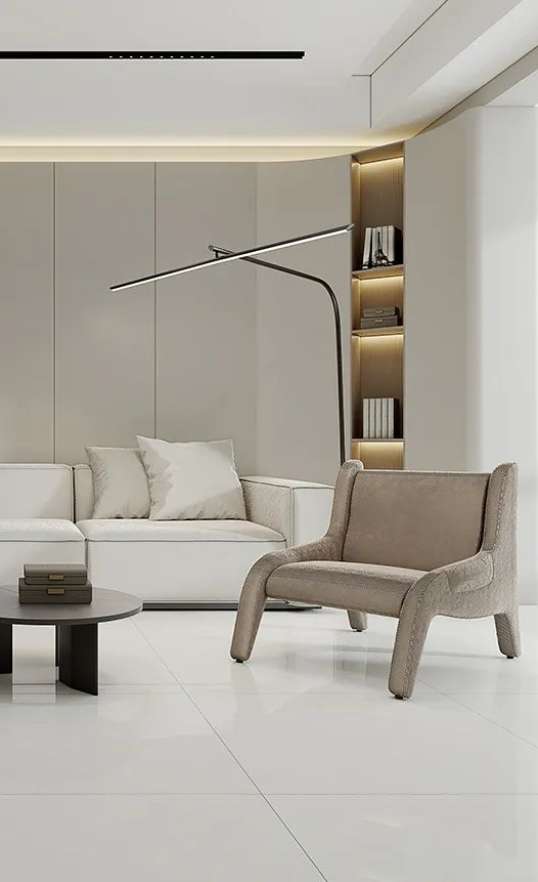 開放式客廳與組合型茶幾靈活于空間活動之中,1500轉(zhuǎn)高耐磨度席夢娜作為地面鋪貼,讓空間足夠開闊,笑聲得以承載的同時(shí),每一寸美學(xué)空間都經(jīng)得起時(shí)間磨練。