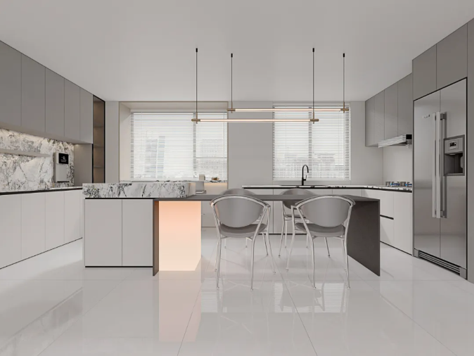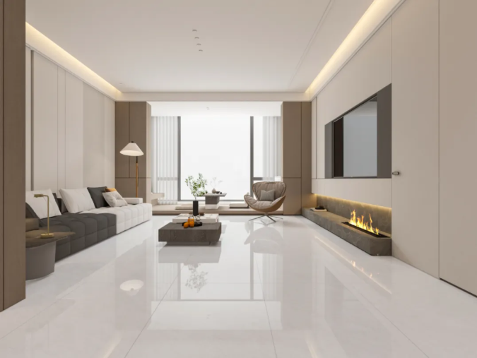 它是對通體大理石工藝的一次靜默升級,優(yōu)化坯體白度,使磚面色彩更為純粹、紋理更具層次。98°全拋釉面,光感如絲綢般細膩,